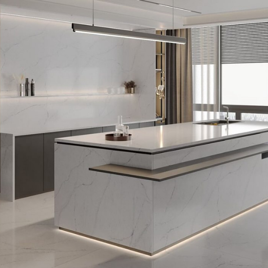 Modern ve dayanıklı granit, mermer ve kuvars tezgâhlarla mutfaklarınıza estetik ve uzun ömür kazandırıyoruz.